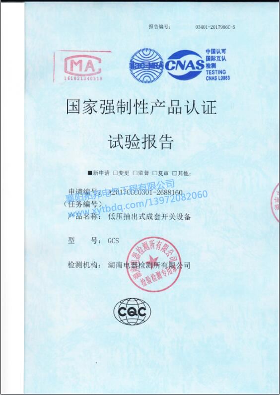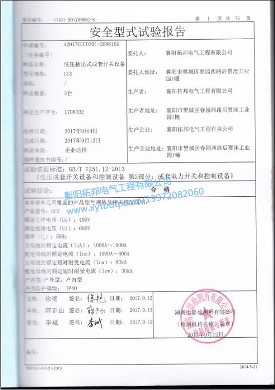 低壓抽出式成套開關設備 強制性產品 試驗報告